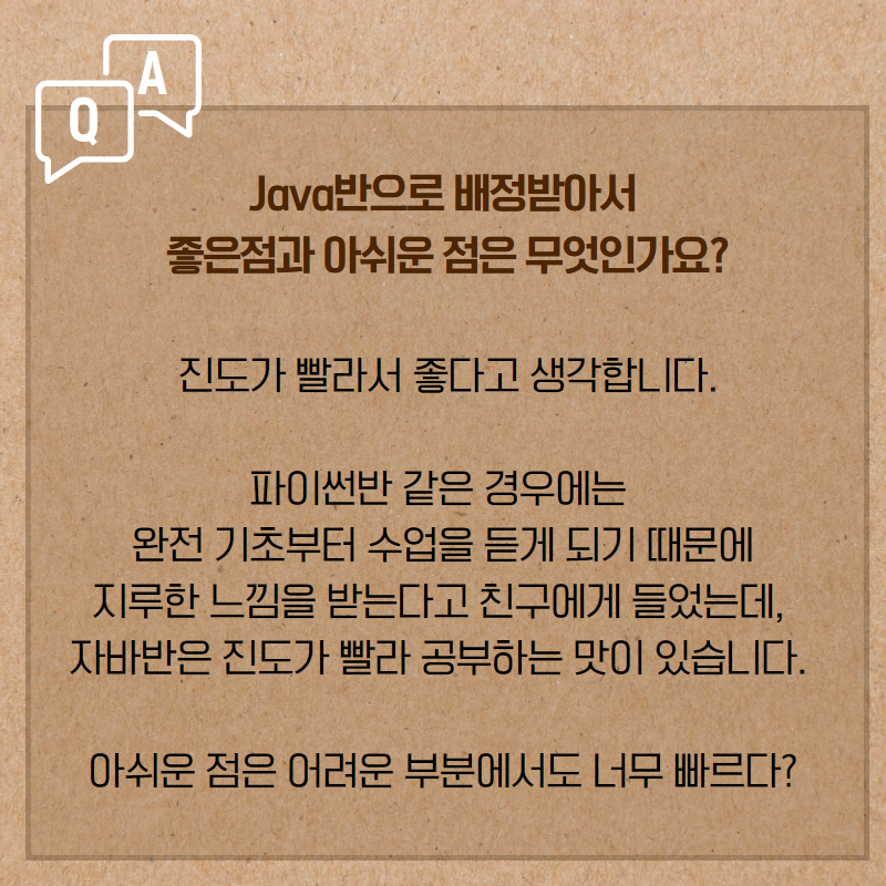만약 Java반에 들어갔더라면 진도도 따라잡지 못했을 것 같아요.
