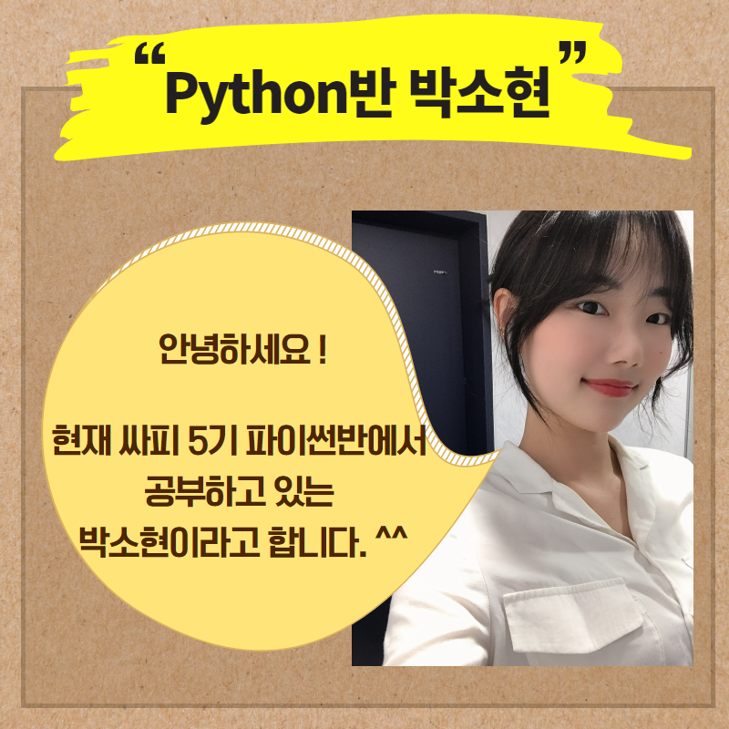 눈치채신 분들도 계시겠지만, Python반의 박소현 학생은 바로 저랍니다..! 😂
