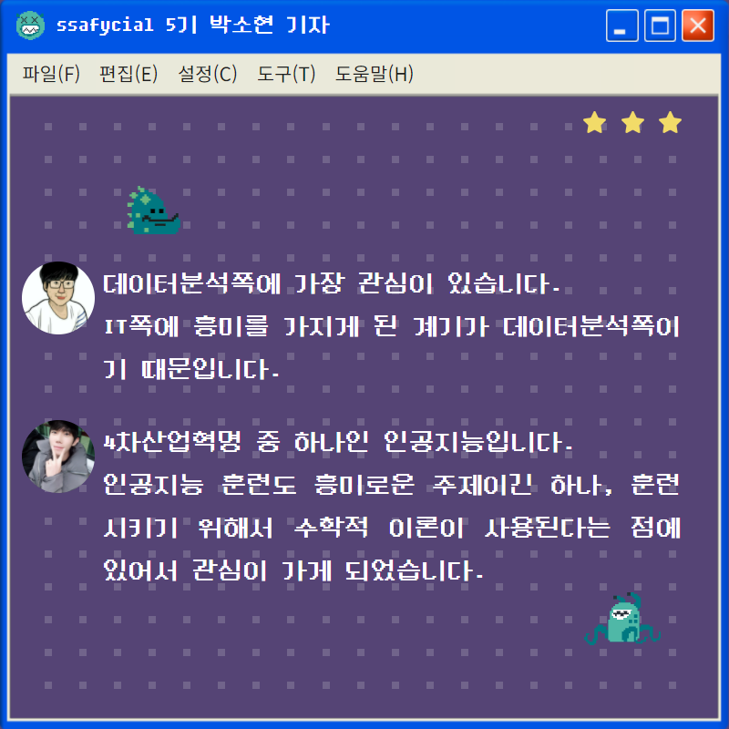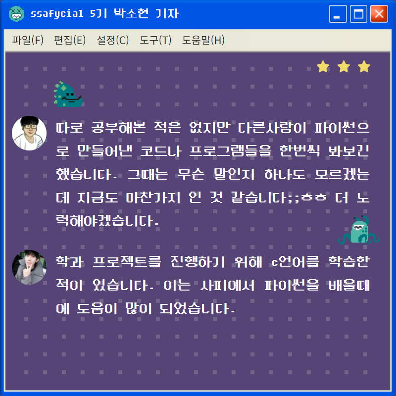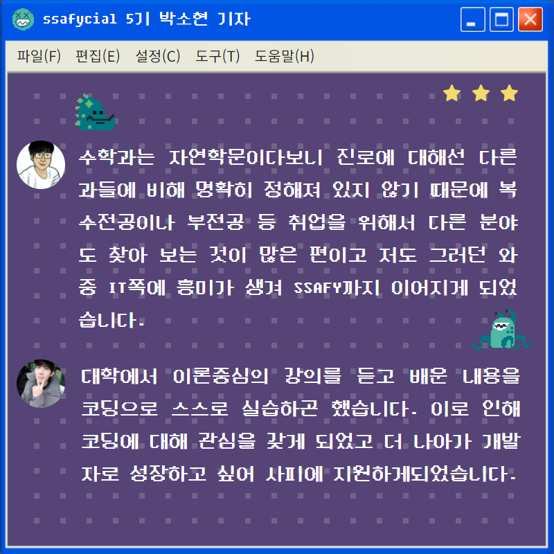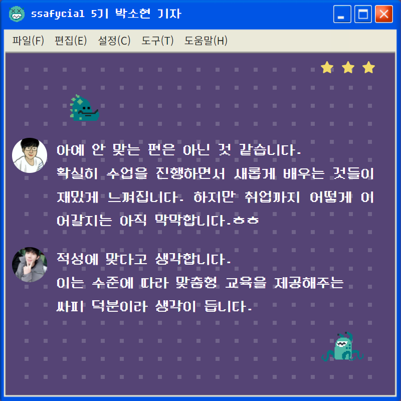 싸피에 들어오길 희망하는 분들이 많을 것으로 생각되어 인터뷰를 해보았습니다!