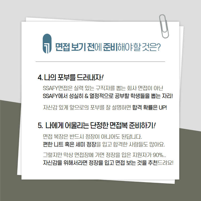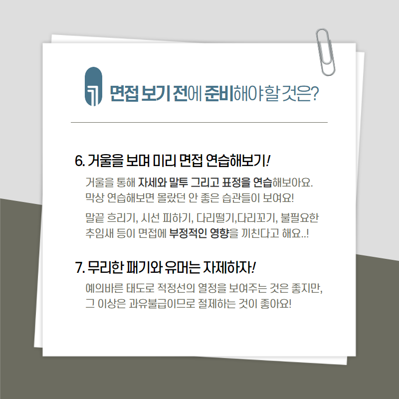 마지막까지 긴장의 끈을 놓지 않고 면접 준비를 해보아요!