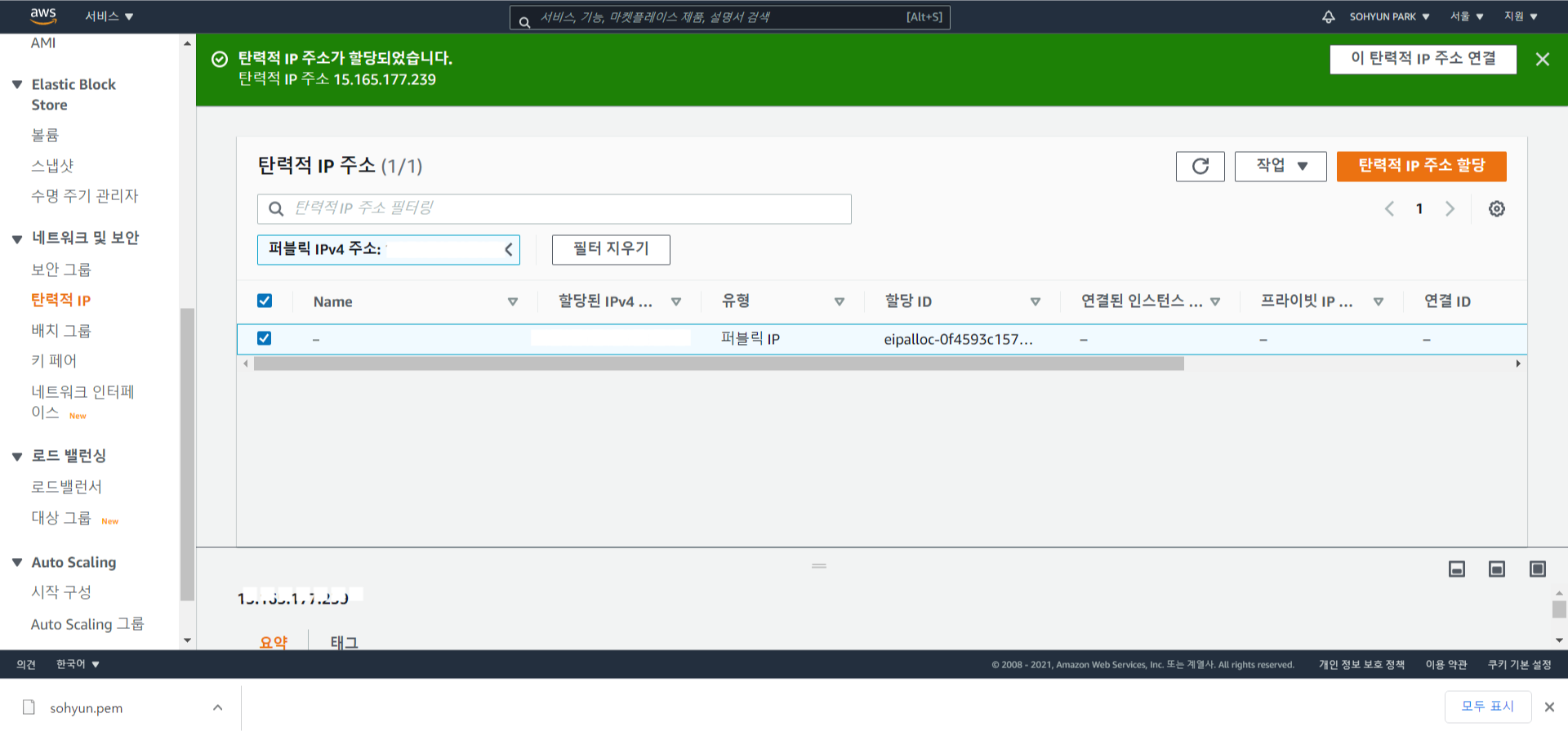 본인의 PC(클라이언트)에서 EC2(서버)에 접속해보자