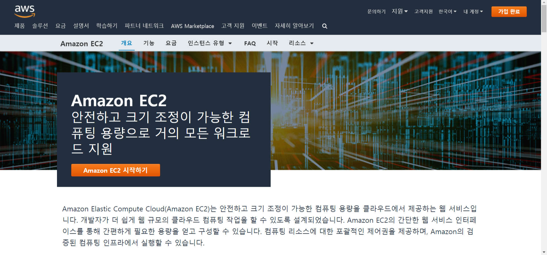 EC2(Elastic Cloud Compute) 서비스를 사용하면 리눅스가 있는 서버 인스턴스를 사용할 수 있다.