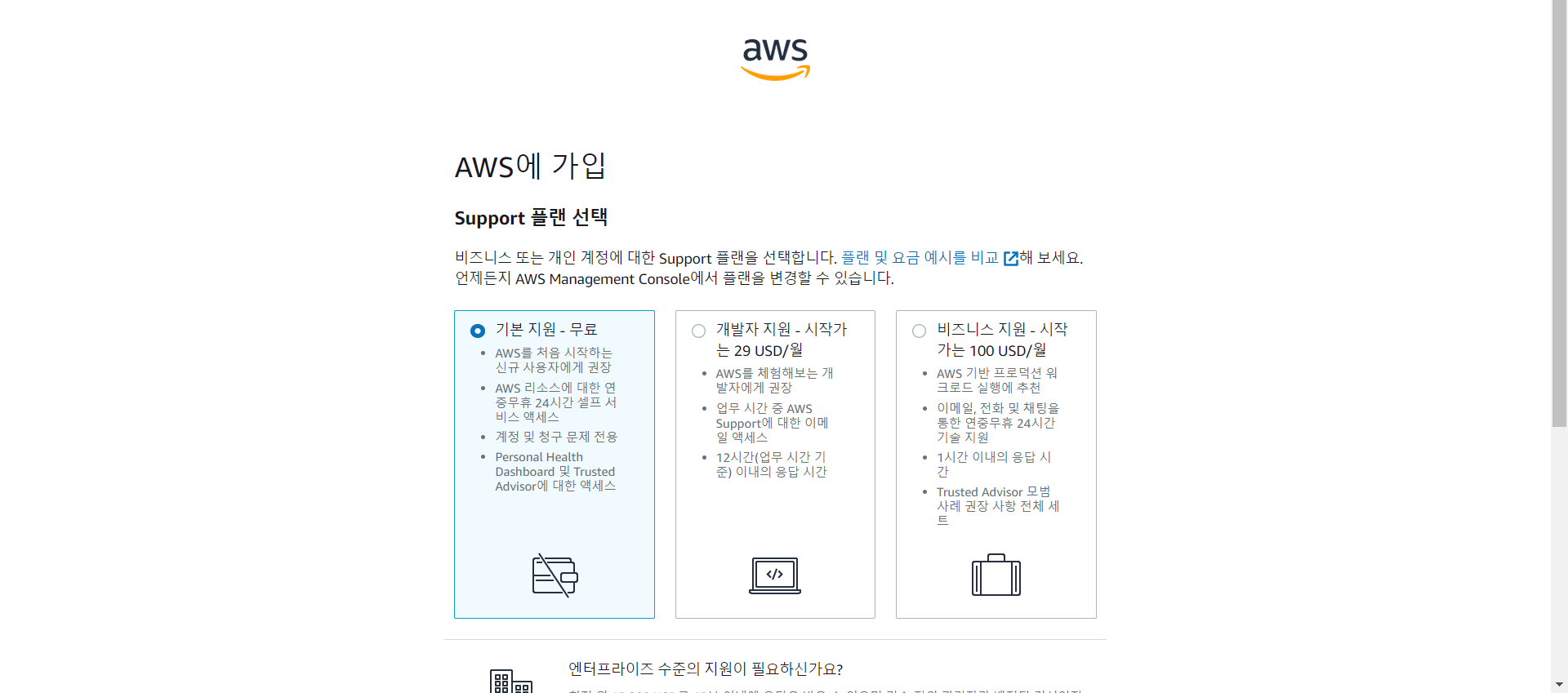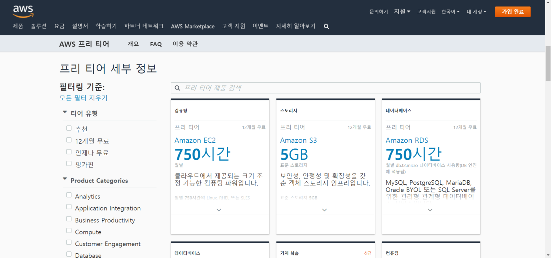 아래의 링크로 들어가 프리 티어로 시작해보자.