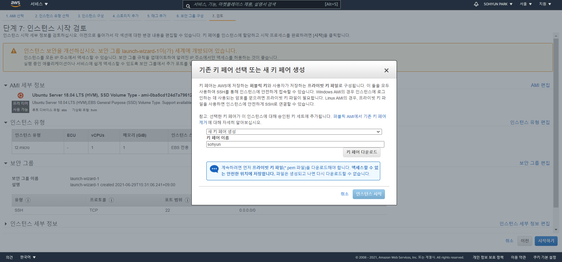 ssh -i "D:\AWS 키페어 인증서\UbuntuSohyun.pem" ubuntu@서버IP주소