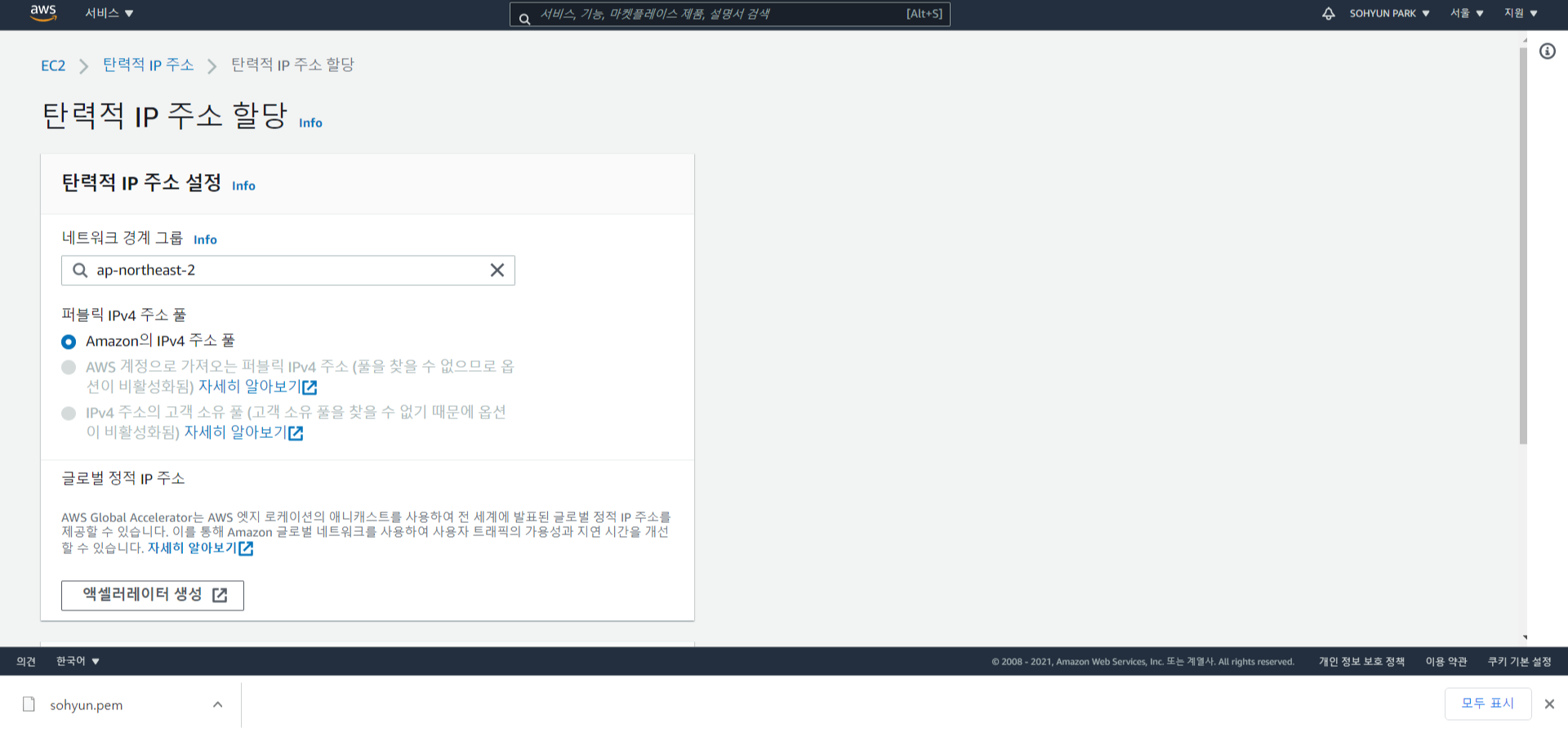 # 인증서를 이용해서 해당 서버(인스턴스 고유 고정 IP주소)에 ubuntu 계정으로 접속한다 라는 의미