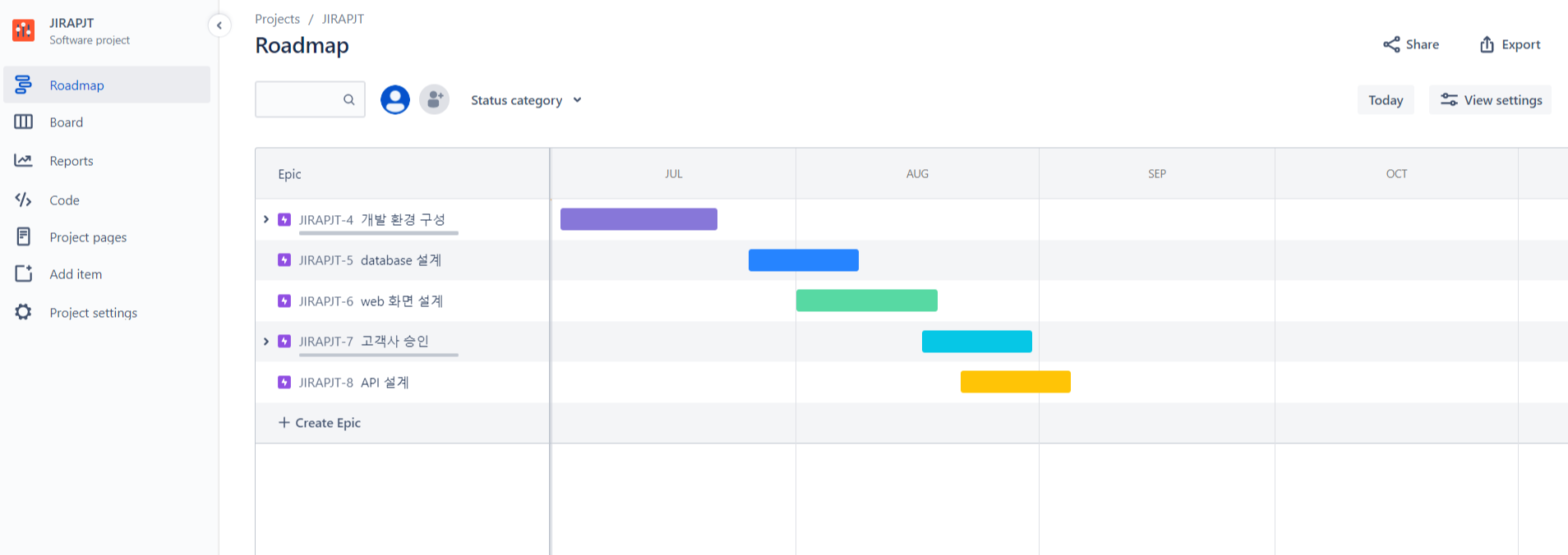 Roadmap에서 Epic추가 및 기간설정