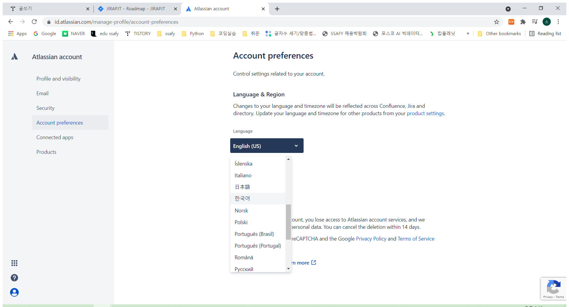 JIRA 언어 설정