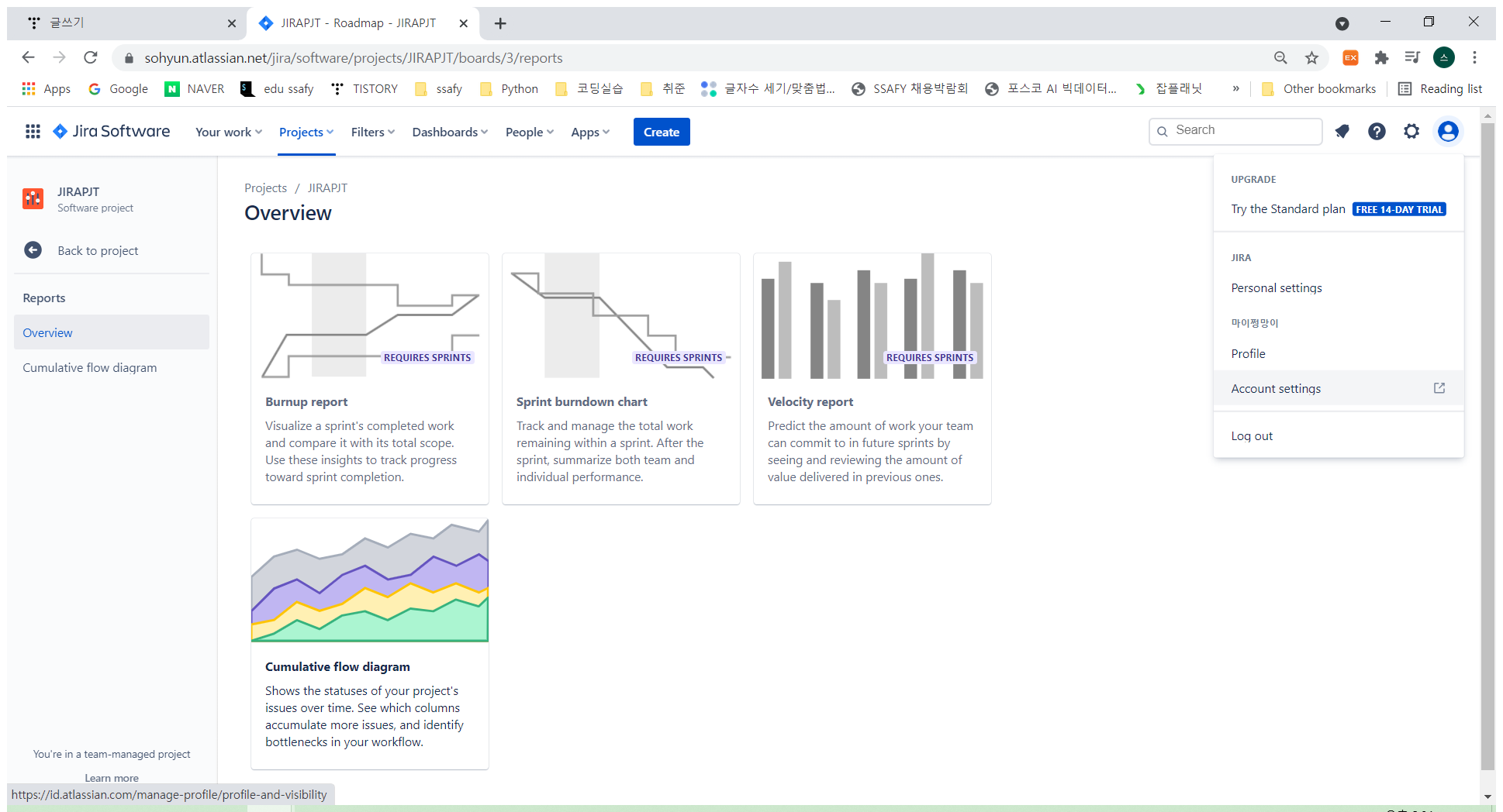 team-managed의 Sprint burndown chart 활성화 하기