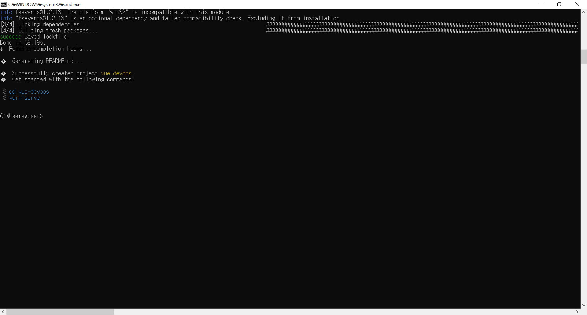 프로젝트 명은 임의로 vue-devops 라는 이름을 사용해본다.