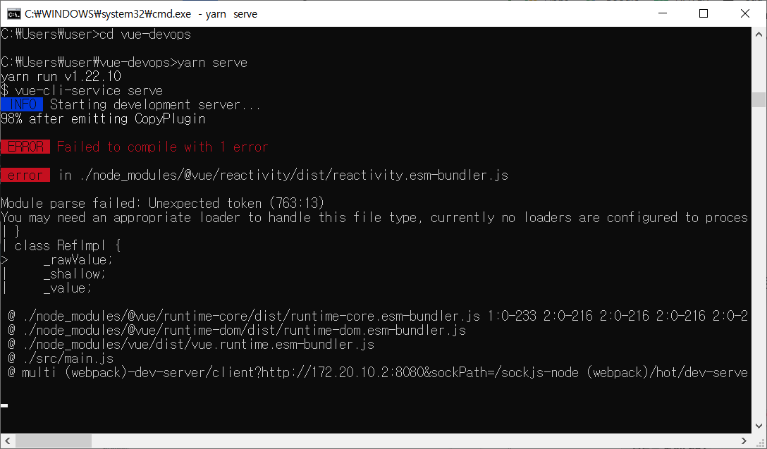 이제 생성된 프로젝트로 이동하여 프로젝트를 yarn serve로 실행하여 웹 브라우저에서 확인해보자.