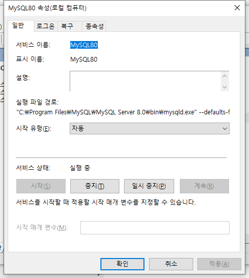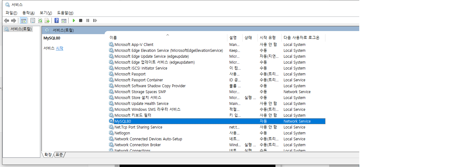 컴퓨터 부팅 시 자동으로 MYSQL이 실행되지 않도록 설정해주는 것이다!