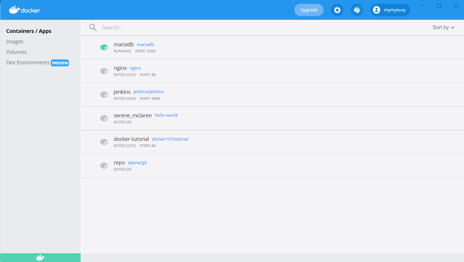 3. docker에서 mariadb 재실행 후 cmd창으로 돌아와 아래 명령어 실행