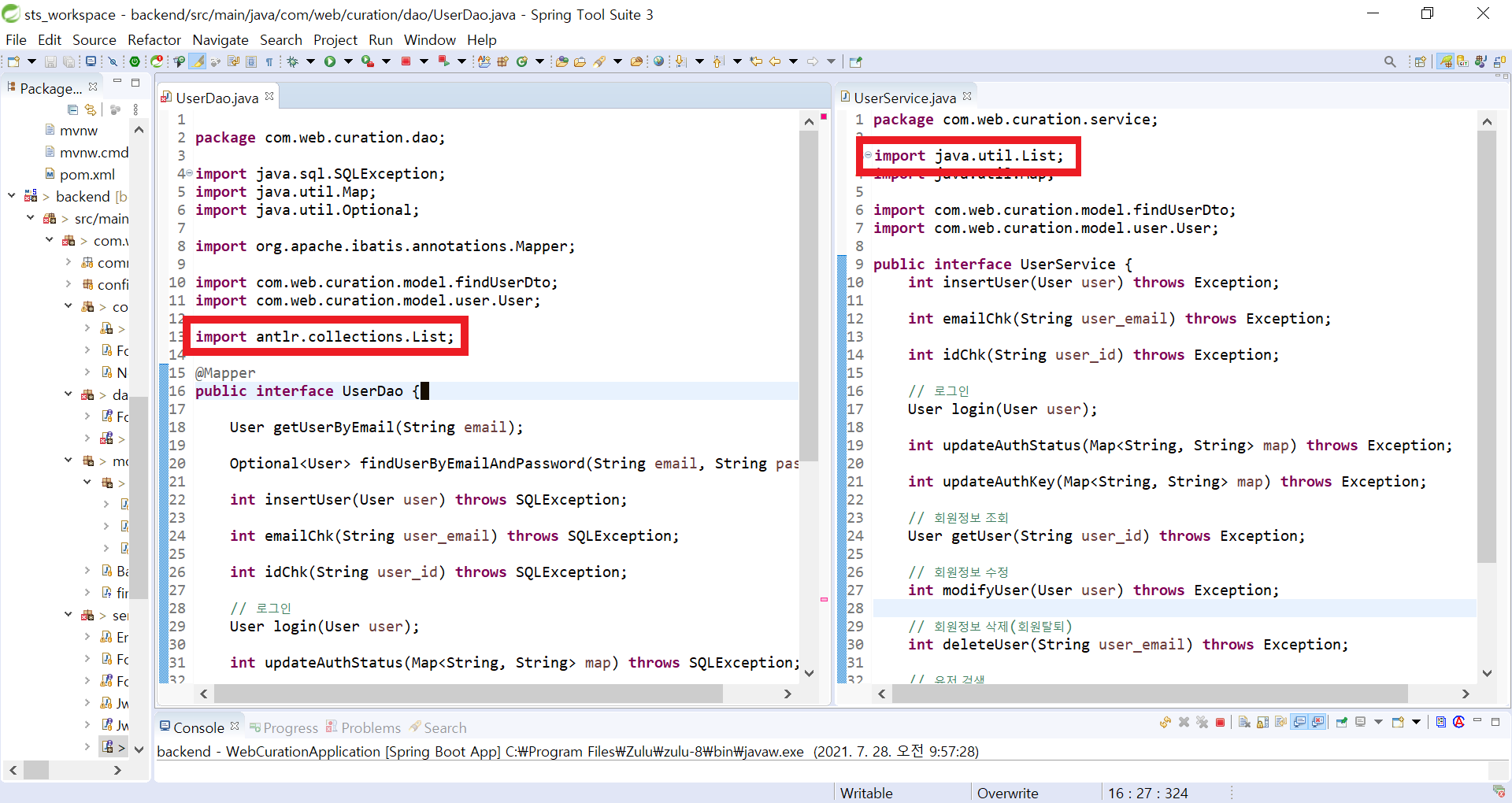 UserDao에서 List를 다음으로 바꾸어 import해주면 된다.