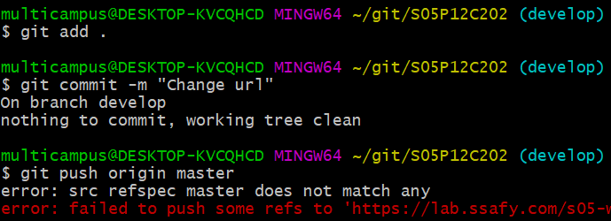develop의 HTTPS을 가져와 원격저장소로 지정해주었기 때문에,
