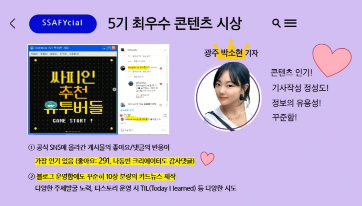 싸피셜 4기 우수 콘텐츠상을 받았던 분..
