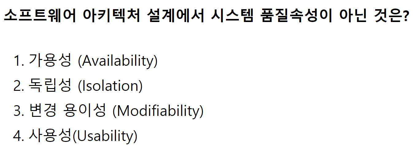 가용성/변경용이성/성능/보안성/사용편의성/시험용의성