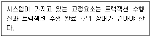 : 트랜잭션의 수행 전, 후의 데이터 간의 불일치가 생겨서는 안 된다.
