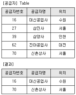 1. SELECT * FROM 공급자 WHERE 공급자명 LIKE '%신%';