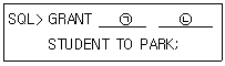DBA가 사용자 PARK에게 테이블 [STUDENT]의 데이터를 갱신할 수 있는 시스템 권한을 부여하고자 하는 SQL문을 작성하고자 한다. 다음에 주어진 SQL 문의 빈칸을 알맞게 채운 것은?