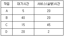 HRN 방식의 우선순위 산정 공식(대기시간+서비스시간)/서비스 시간