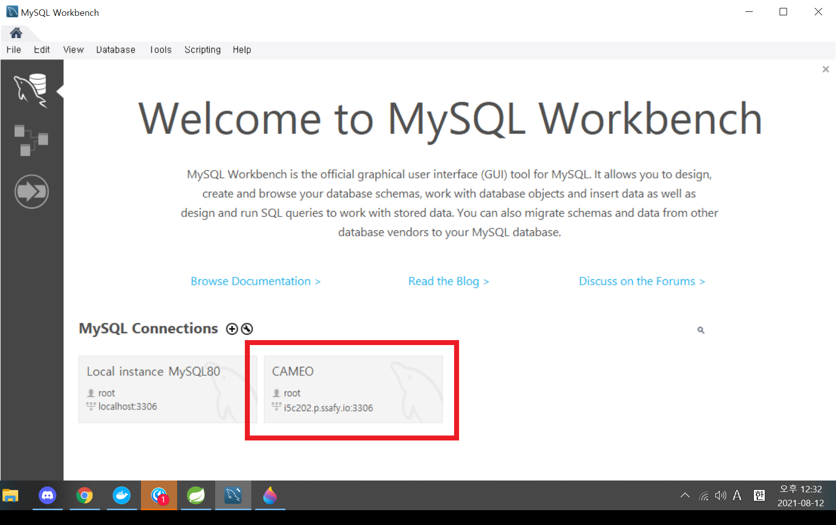 1. MySQL Workbench를 켠다.