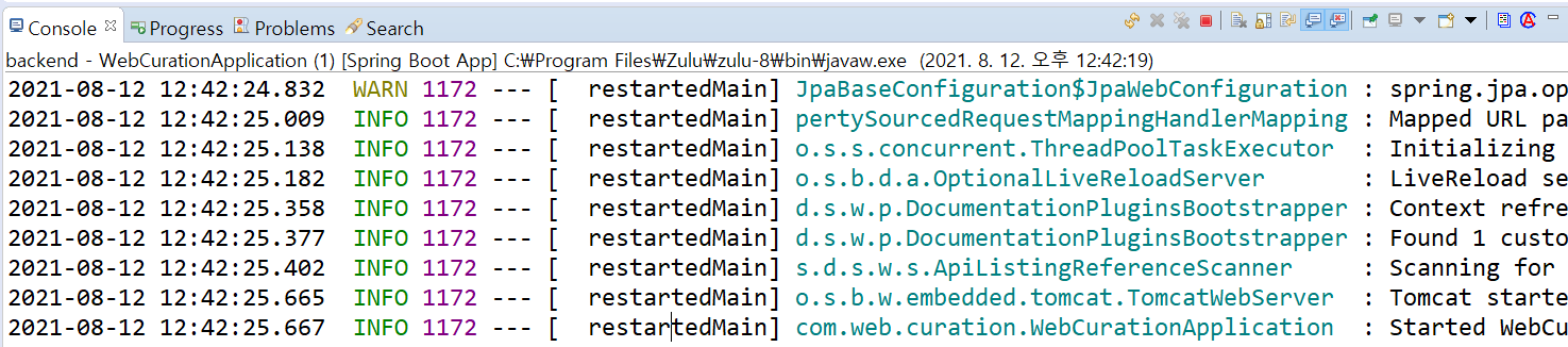5. WebCurationApplication.java를 실행시켜 서버를 돌려보자.