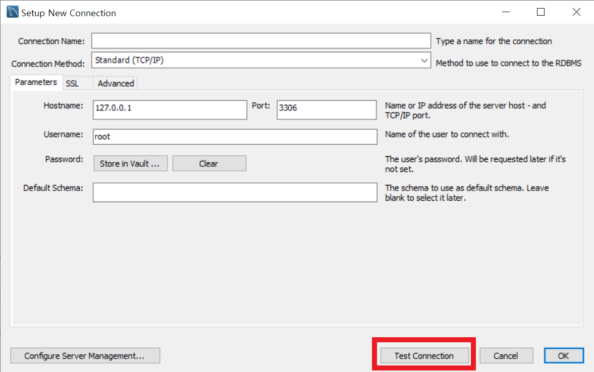 - Connection Name : 연결 이름을 붙여주는 곳인데, 내가 지금 추가하는 커넥션을 원하는 대로 부르고싶은 대로 설정해준다.