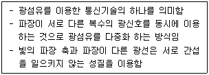- 다중화기 중 주파수 대역폭을 다수의 작은 대역폭으로 분할 전송하는 방식