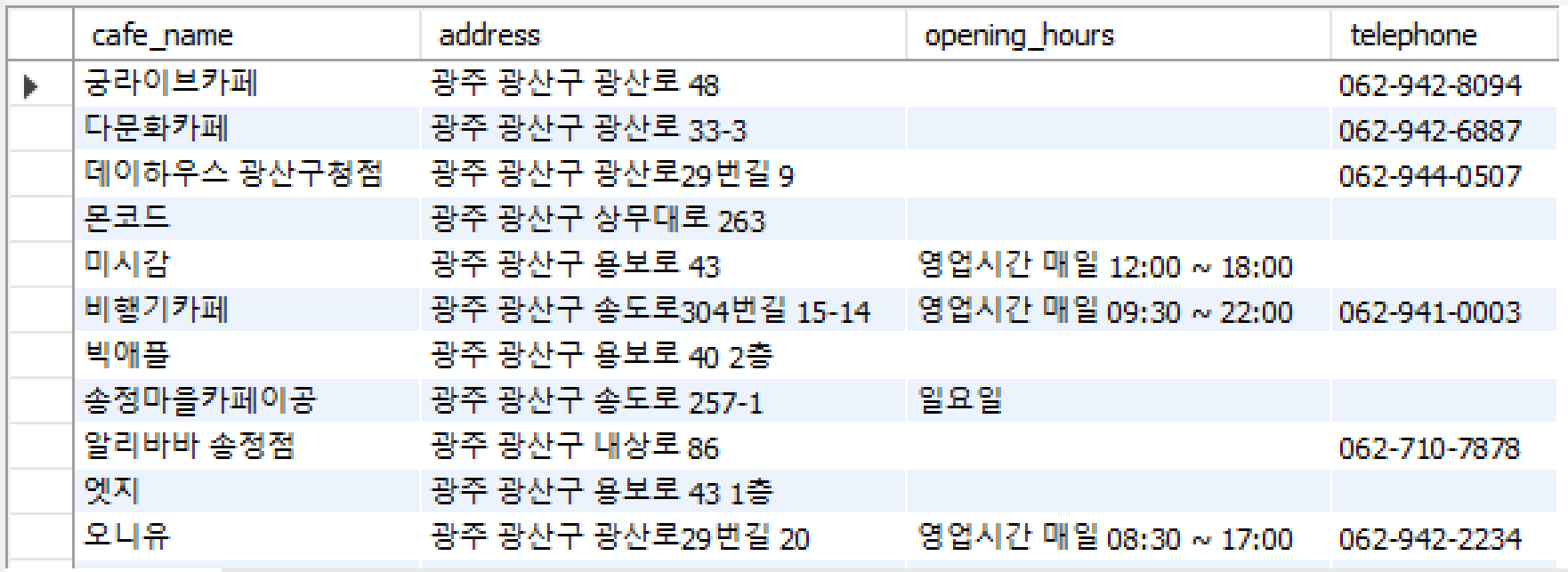 우리는 광주 지역의 카페에 대한 정보를 스크래핑하고 싶었다.