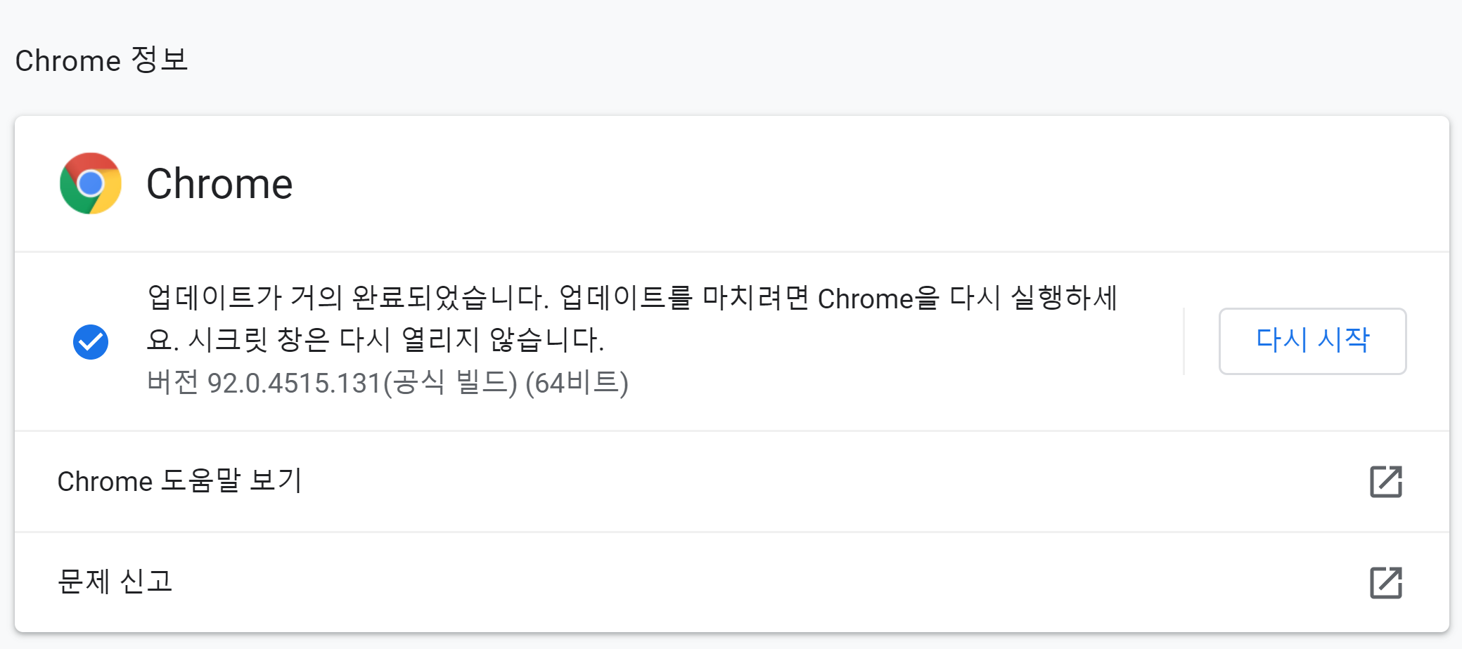 Chrome의 버전 업데이트가 매우 빠른 것 같다. 개발 초창기에 Chrome 버전에 알맞도록 chromedriver.exe를 설치했다 하더라도 금방 버전이 바뀌어 에러를 발생시키다니..