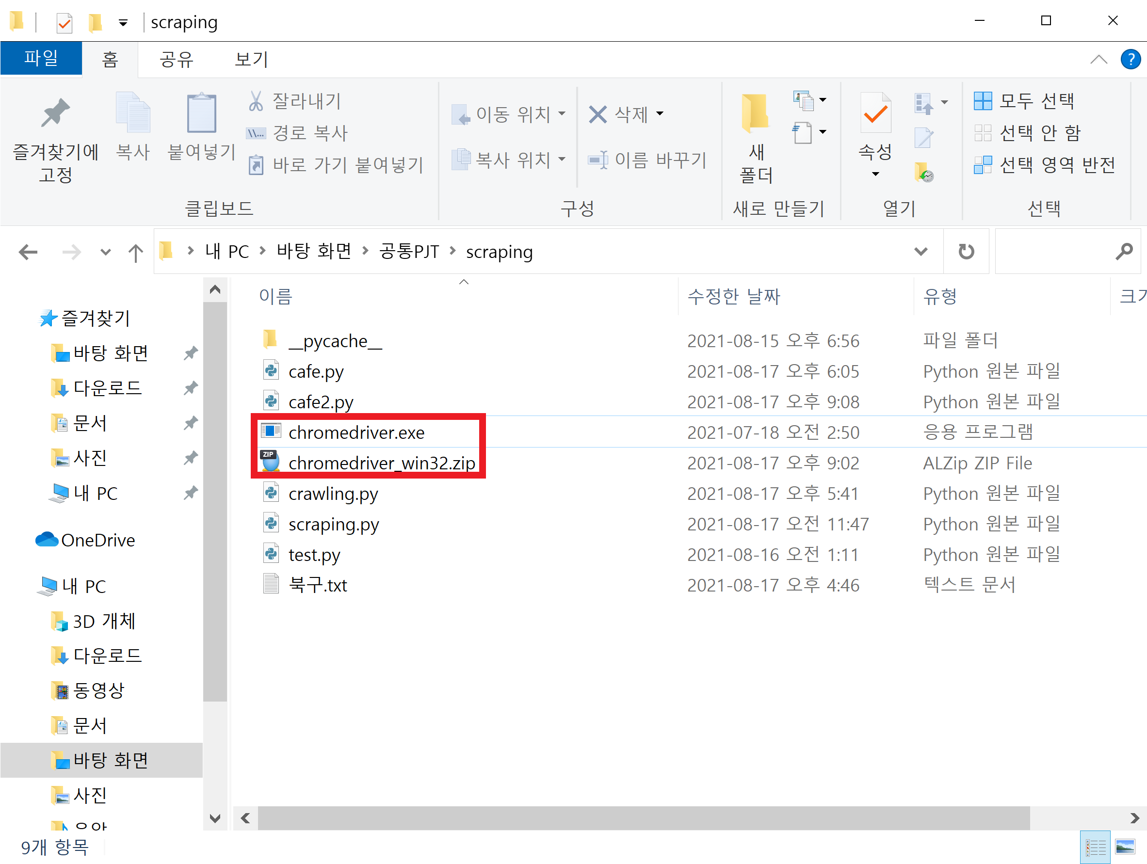 이때, Selenium을 돌릴 파일과 같은 경로에 다운로드하여야 한다.