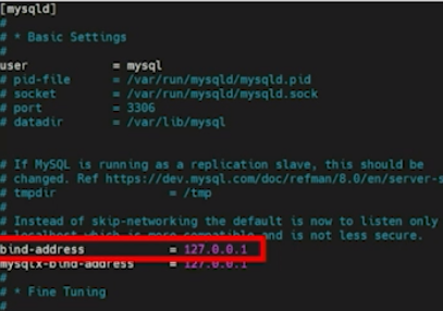 설정 파일을 열고 난 뒤 127.0.0.1로 되어 있는 bind-address를 0.0.0.0으로 변경해 주면 된다.