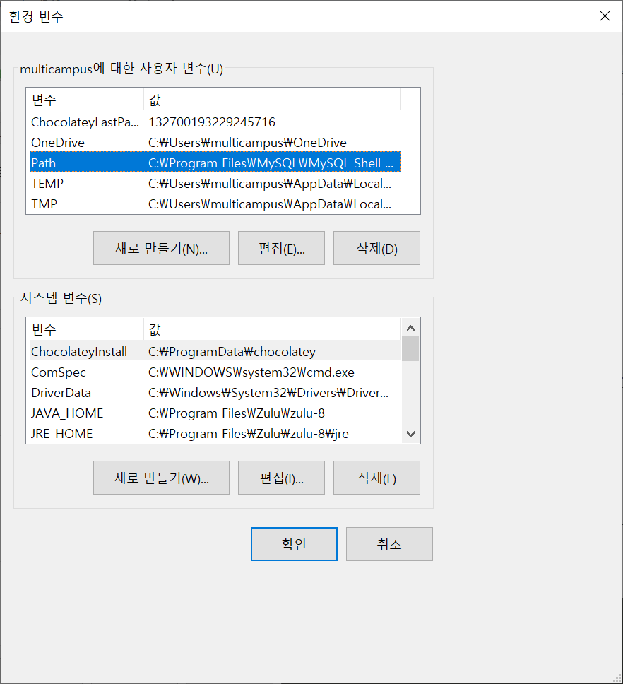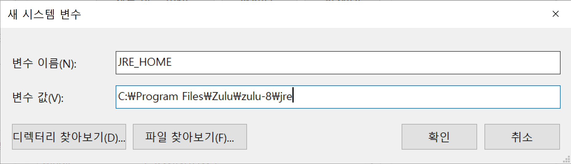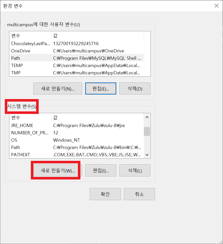 나는 JRE_HOME이 없어서 시스템 변수에서 새로만들기 탭을 통해 만들어주었다.