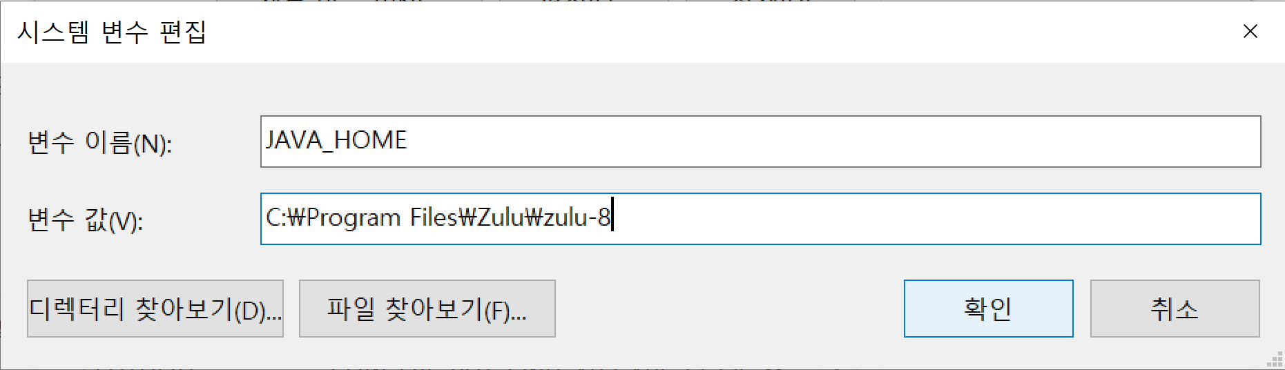 6. 이제 JAVA_HOME설정을 다음과 같이 해주자.