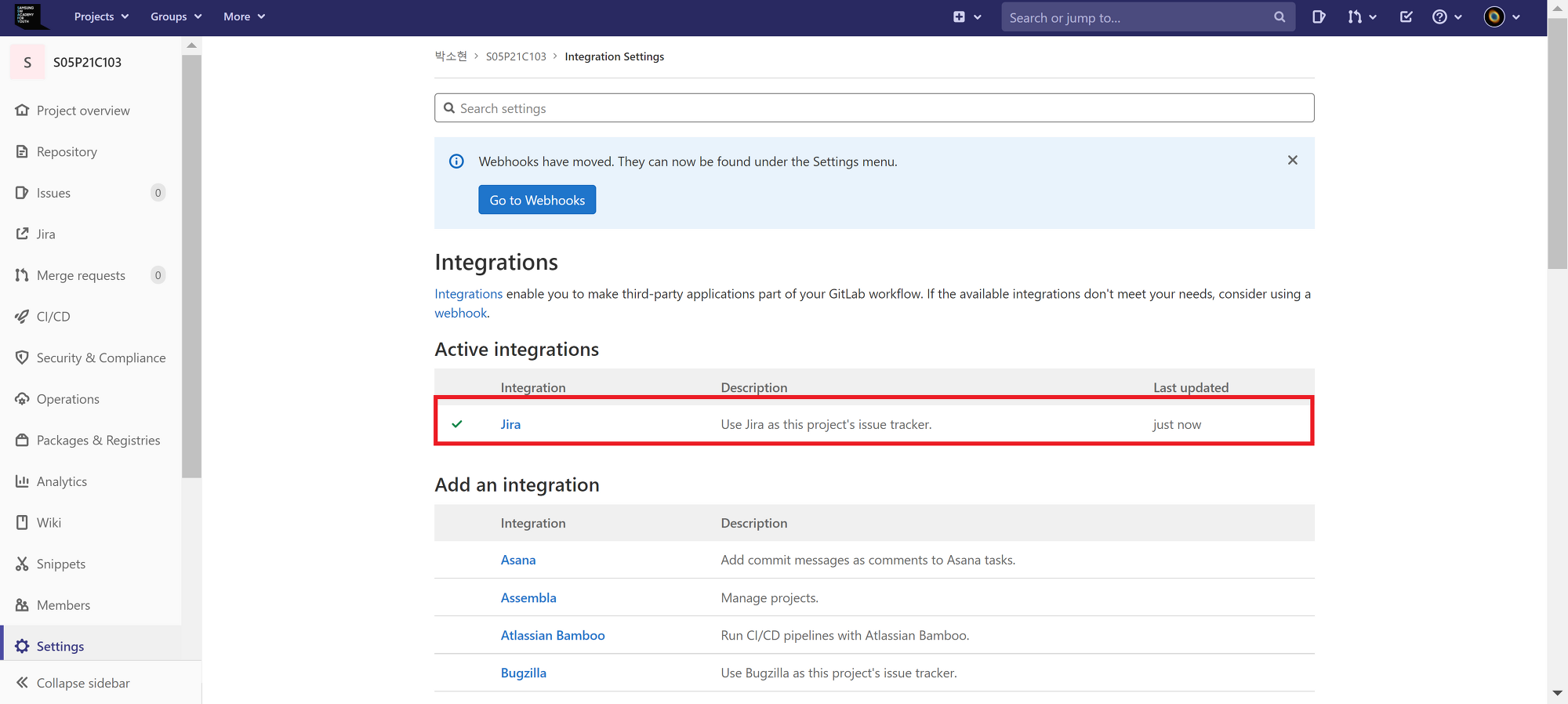 이제 gitlab에 커밋 푸시하여 연동이 잘 되는지 테스트해보자