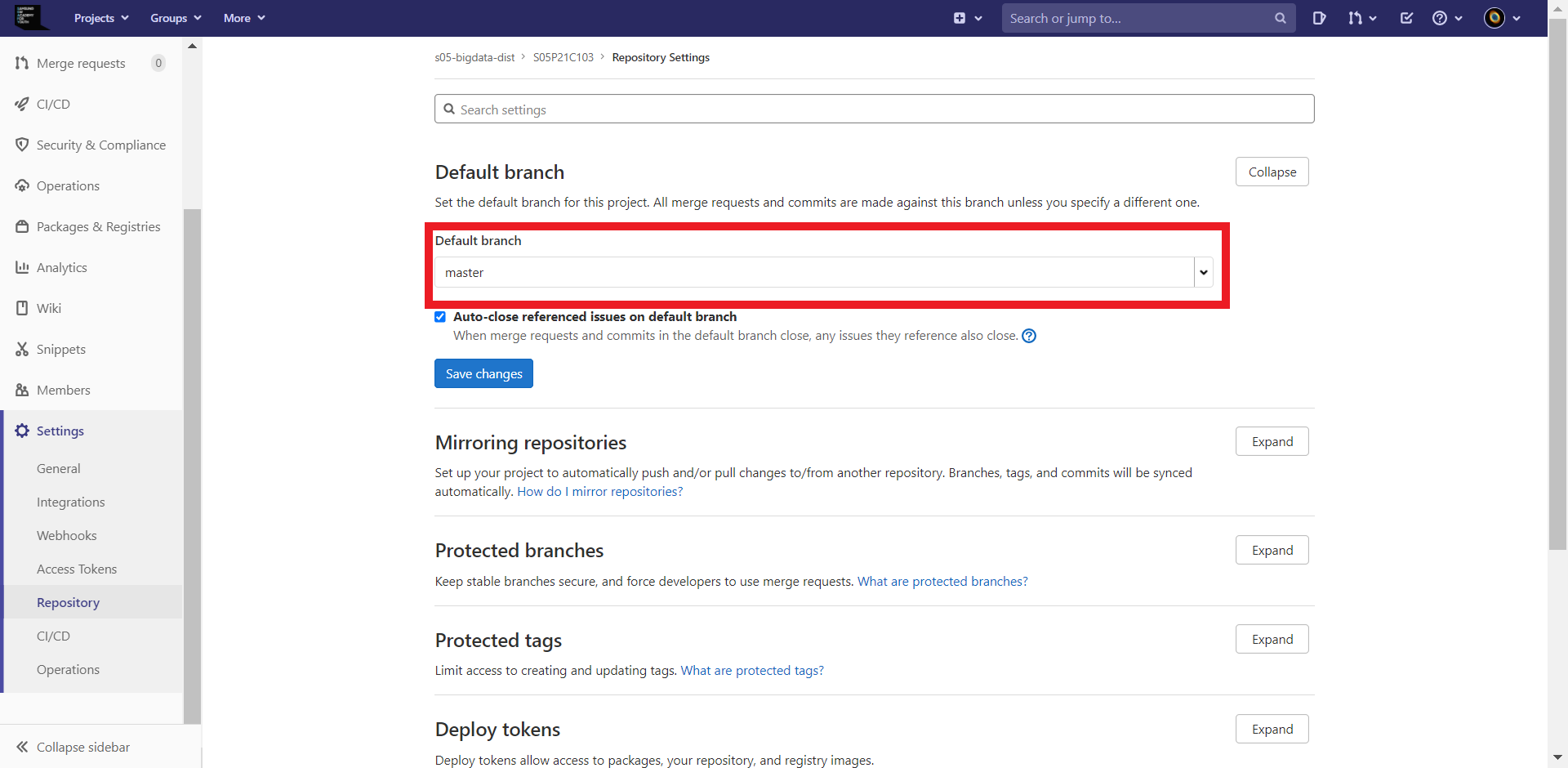 현재는 master 브랜치가 Default 브랜치로 설정되어 있다.
