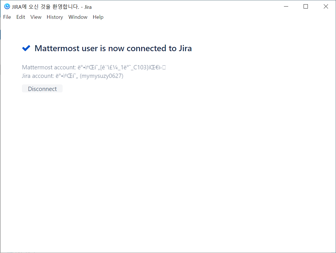 Mattermost로 이동하여 JIRA의 알람을 받아볼 채널의 채팅창에 /jira connect을 실행시켜준다.