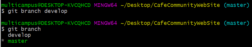 맨 처음 Github 레포지터리를 생성한 후 로컬에 원격저장소를 clone하면 master 브랜치 밖에 존재하지 않는다.