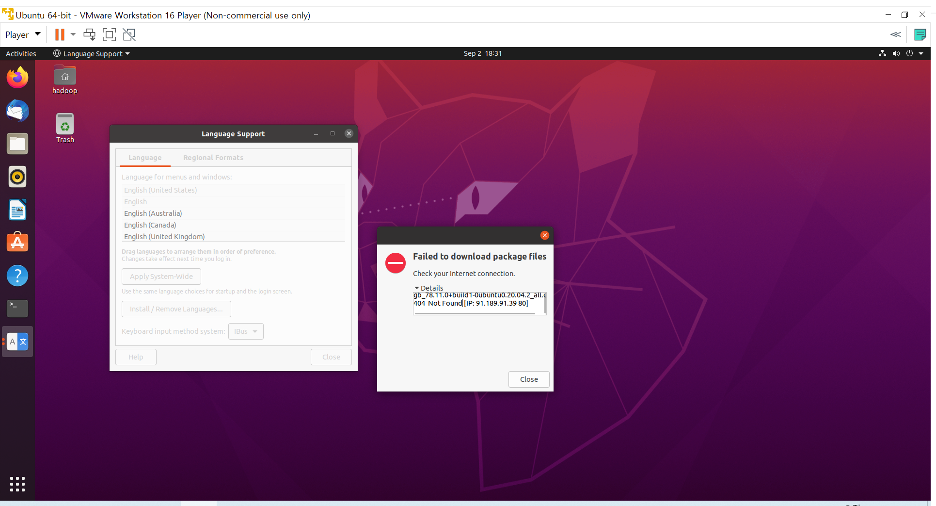 Ubuntu가 영어로 되어있어서 한글로 바꿔주려던 찰나에 만난 에러.