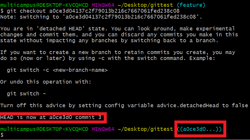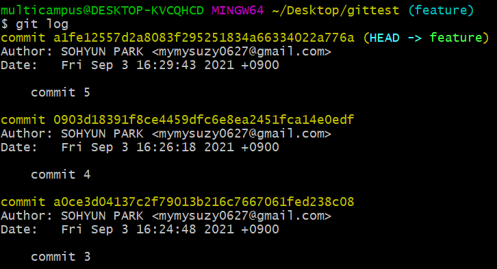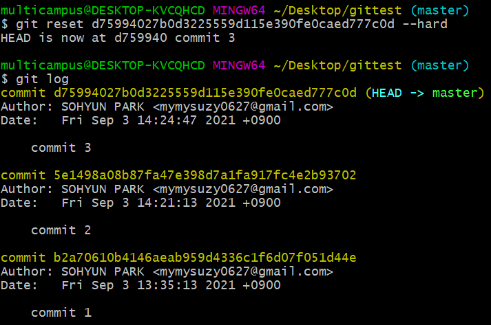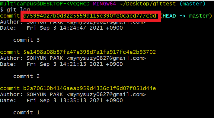 우선 commit 3의 commit 고유 주소를 복사하자.
