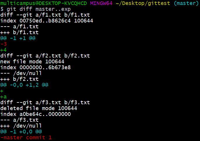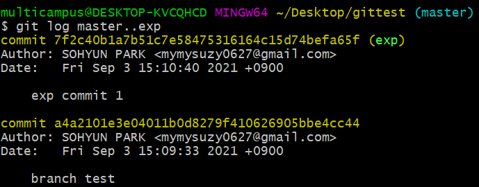 만약, exp에는 없고 master에는 있는 내용 보고싶다면 반대로 작성하면 됨