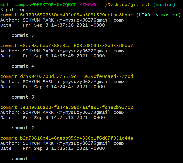 log내역을 Gistory에서 열어보는 것과 비슷하게 커맨드 창에서 실행할 수 있다.