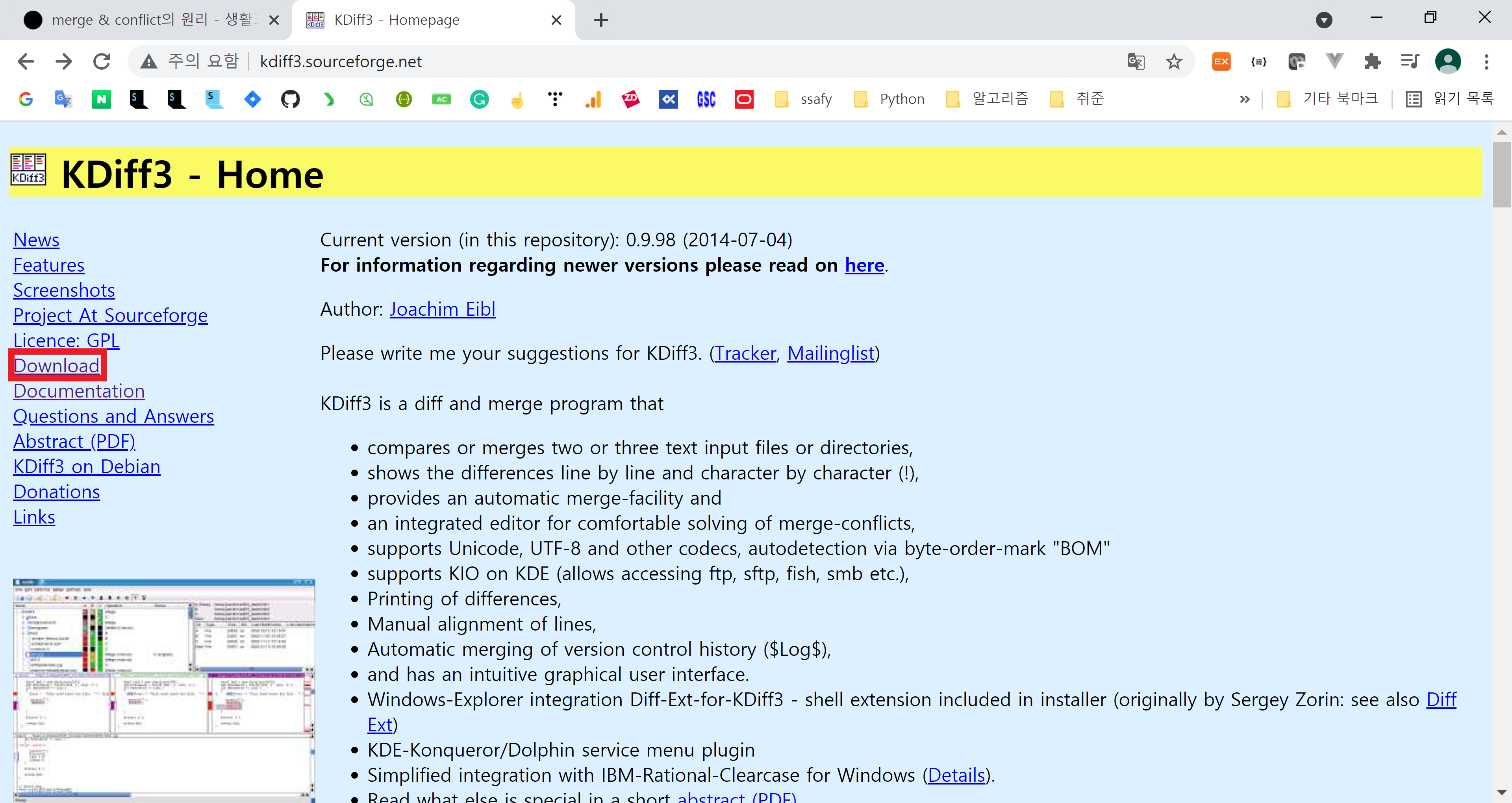 1. KDiff3 공식 홈페이지 - Download