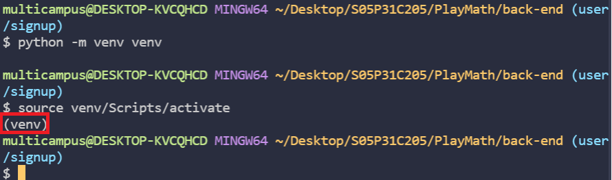 (powershell 환경이라 git bash환경에서 사용하는 source venv/Scripts/activate와는 조금 다르다.)