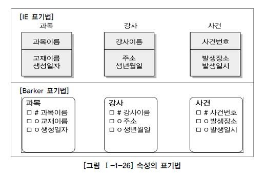 • 엔터티와 마찬가지로 반드시 해당 업무에서 필요하고 관리하고자 하는 정보이어야 한다. (예, 강사의 교재이름)