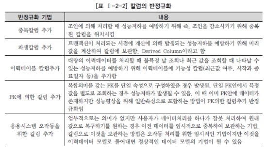 반정규화를 적용하기 위해서는 그림 Ⅰ-2-13에 나타난 것처럼 먼저 반정규화의 대상을 조사하고 다른 방법을 적용할 수 있는지 검토하고 그 이후에 반정규화를 적용하도록 한다.