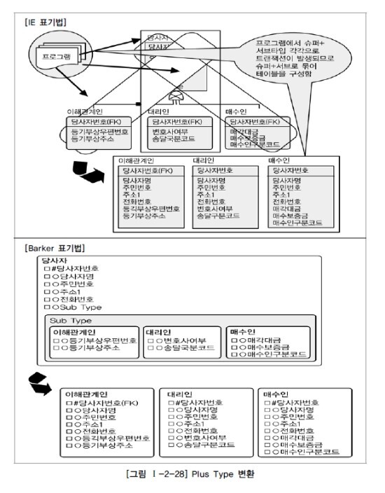 다. 슈퍼/서브 타입의 데이터 모델의 변환 기술