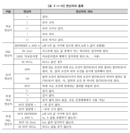 - 사용자들은 자신이 원하는 자료만을 검색하기 위해서 SQL 문장에 WHERE 절을 이용하여 자료들에 대하여 제한