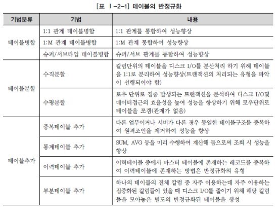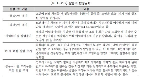 성능을 향상하기 위해 정규화된 데이터 모델에서 중복, 통합, 분리 등을 수행하는 모든 과정.