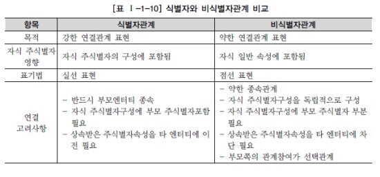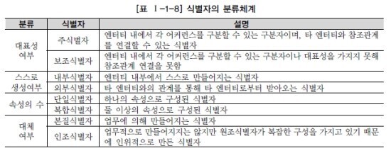 주식별자에 의해 엔터티 내에 모든 인스턴스들을 유일하게 구분. - 최소성
